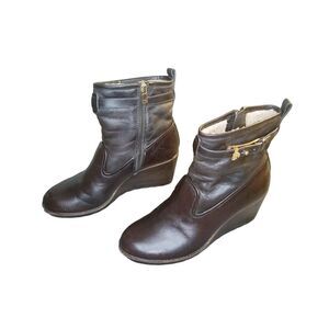 Tory Burch Primrose Wedge Bootie Women 8 Dark Brown Leather Boot Shearling Lined