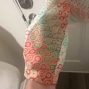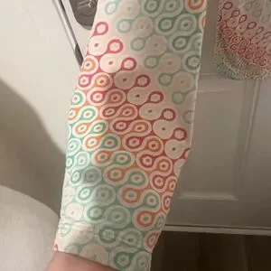 Brighten your wardrobe with this vibrant women's athletic top featuring a playful geometric pattern. Perfect for adding a pop of color to any sporty outfit. Great for pickle ball, tennis, golf or any women’s athletic sport event.