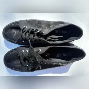 Step out in style with these chic black sequin sneakers. Perfect for adding a touch of sparkle to any outfit. Only worn once! I feel they run small.