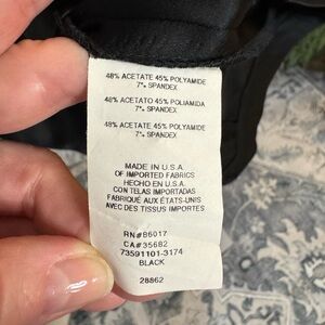 This 90’s vintage black satin Bebe dress is timeless and elegant. The V neck front and back is lined with lace. Side zipper makes for an hour glass fit. Pencil skirt fit with stretch like the Bebe bandage style. Hook and eye closure at top of zipper. Bottom slit in back. Top section of dress is double lined and satin on inside for luxury feel.