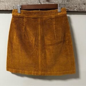 In supersoft wide-wale corduroy, this button-front A-line mini