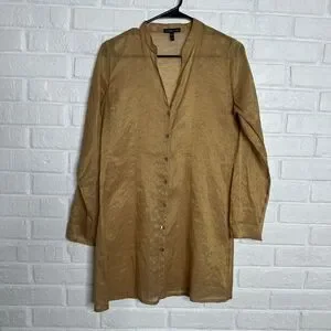 Eileen Fisher Metallic Shimmery Gold Tunic Top Button Front size XS
