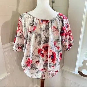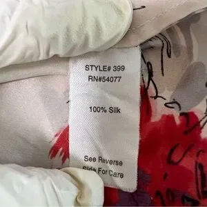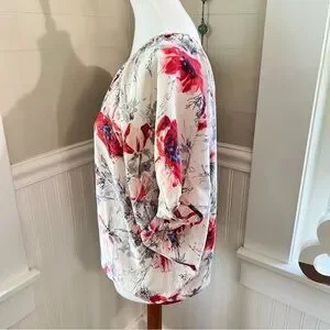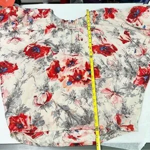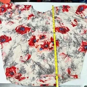 Cabi Blouse 100% Silk #399 Gray Red Poppy Floral Flower Fairy Top Oversized