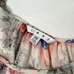 The silk fabric is light and floats beautifully and the gray and red poppy watercolor print is timeless. This is vintage cabi at its best.