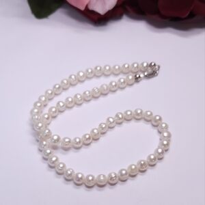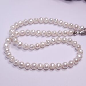 Handmade Genuine Rose Akoya Pearl Necklace Sterling Silver Clasp 16" Choker