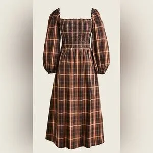 J.Crew Smocked Puff-sleeve Dress in Friday Plaid