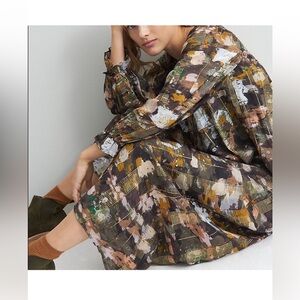 Anthropologie brown/gold midi dress M