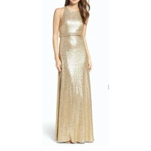 Jenny Yoo Sloane Sequin Blouson Gown, Gold, Size 14