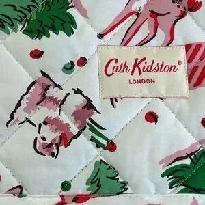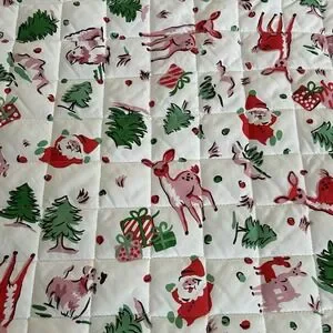 PREOWNED Cath Kidston London Ditsy Deer Pink Pattern Christmas Holiday Themed FULL Size Lightweight Quilt Approximately 87.5" Length x 77.5" Width