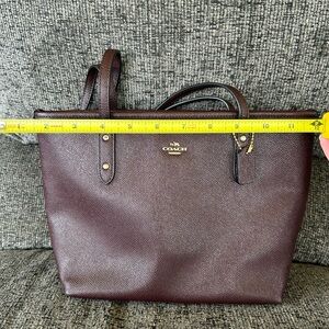 Elegant and versatile, this Coach leather tote bag is perfect for any occasion. Crafted with high-quality materials, it offers both style and functionality. The bag is in great condition and I’m throwing in that black wallet (see last two pictures).