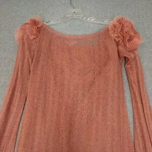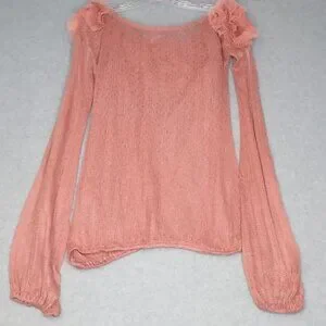 By Stella XL Loose Knit Off Shoulder 3D Floral Wool Blend Flawed Sweater Balloon
