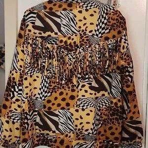 Stand out with this stylish animal print jacket. Perfect for adding a bold touch to your wardrobe. The fringe is so fun.