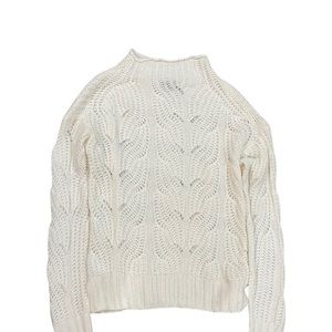 J. Crew Pointelle Cable Knit Sweater XS Cream Mock Neck Preppy Old Money
