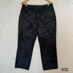 L'AGENCE Rebel Black Chain Jacquard Straight Crop Pants Size 10