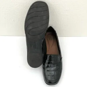 Clarks Gael Angora Black Croc Patent Leather Loafers Women’s 7.5