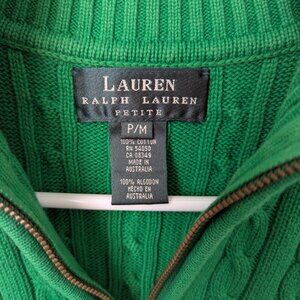 Lauren Ralph Lauren Green Half Zip Sweater, Medium Petite