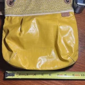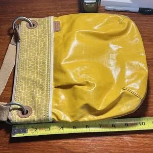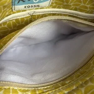 Pre-Owned Fossil Womens Key-Per Boho Fabric Strap Yellow Vinyl Crossbody Purse