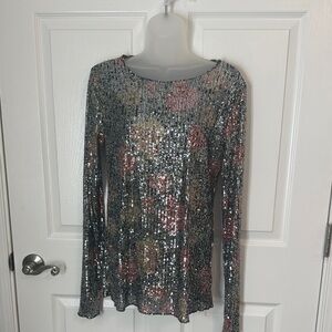 Shimmer in style with this stunning sequin floral top. Perfect for a night out, this top features a beautiful blend of colors that catch the light with every move.