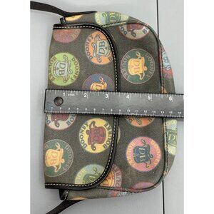 Dooney & Bourke Shoulder Bag Purse Logo Medallion Colorful Coated Canvas Leather Flap Over Black Small