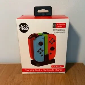 Efficiently charge your Nintendo Switch Joy-Con controllers with the Charging Dock. Featuring a sleek design in red, blue, and black, this dock is perfect for keeping your gaming setup organized.