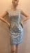 Tony Bowls Blue and White embroidered Sheath Mini Dress with Bateau Neckline