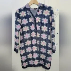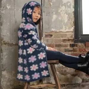 Luxurious, super-soft and cozy hooded statement sweater cardigan for girls. Combining an elegant all-over intarsia floral pattern with two convenient pockets and invisible buttons, it's the perfect accompaniment to any pair of pants or leggings. 100% Nylon