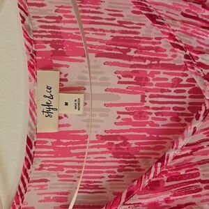 Style & Co, size medium, Elevate your wardrobe with this stylish pink patterned sheer women's top. Perfect for any occasion, this top offers both comfort and elegance. NWT