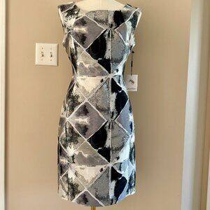 NWT Calvin Klein | Black & Silver Metallic Brocade Cocktail Dress Sz 6