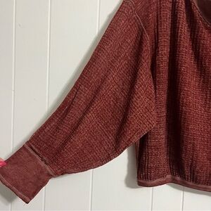 Free People Southside Thermal Waffle Knit Sweater. Size Medium. Cinnamon Red. Sheer, Thin Material. V-Front & Rear.