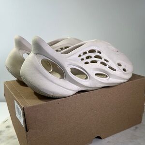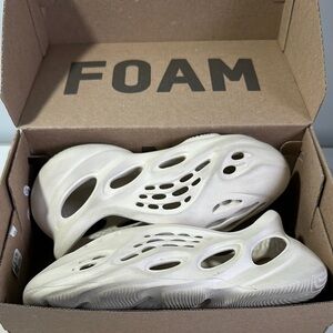 Stylish cream slip-on foam shoes with a unique design. Perfect for casual wear.over all great condition lightly worn