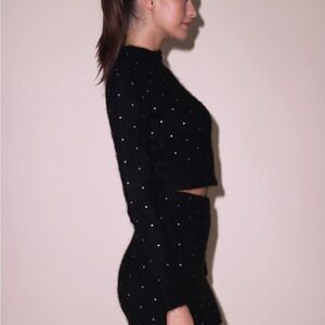 Experience the ultimate luxury mini skirt: Fleur du Mal’s black cashmere/silk mini skirt. Super soft material with hard rhinestone bling.