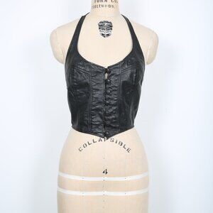 Vintage Black Leather Halter Top Stagecoach Biker Motorcycle Festival Concert