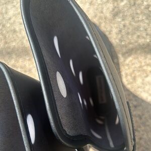 Step out in style with these chic polka dot rain boots. Perfect for rainy days, these black boots with white dots offer both fashion and functionality.