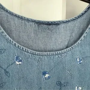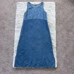 Embroidered Denim Maxi Dress Sleeveless Scoop Neck Size L