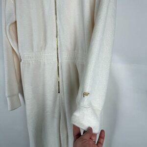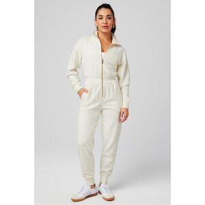 Fabletics Cozy Cord Zip Women L Bone Jumpsuit With Elastic Waist All Day Comfort