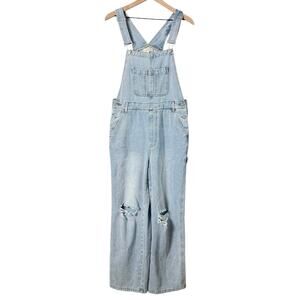 PacSun Light Blue Denim Overalls Wide Leg Baggy Fit 100% Cotton, Size Medium