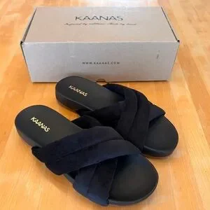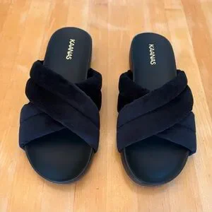 Kaanas Sintra NEW Black Fuzzy Slide Wedge Sandals Plush NEW luxe high quality