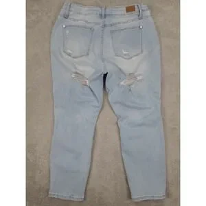 Judy Blue Jeans Womens 16W Blue Boyfriend Fit Distressed High Rise Stretch Rips