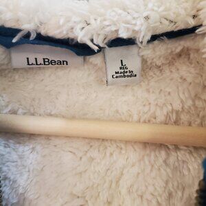 LL Bean sherpa lined jacket hoodie zip sweatshirt teal blue large L