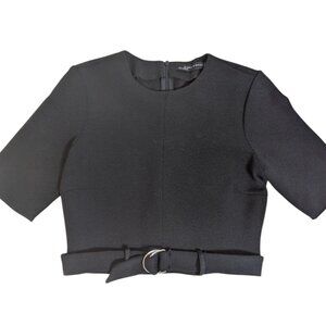 Zara Woman Black Belted Waist Crop Blouse Top