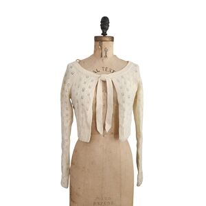 The Limited Angora Wool Tie Front Sequin Ivory Cardigan Sweater Shrug M