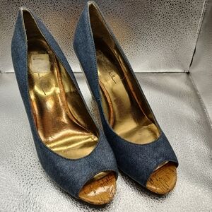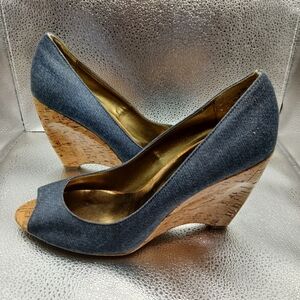Nicole Miller Blue Denim Peep Toe Wedges Women's Size 10