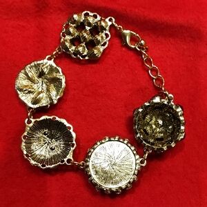 Elegant floral bracelet featuring vibrant pink and red gemstones set in a gold-tone design. Perfect for adding a touch of color to any outfit.