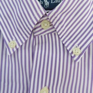 Ralph Lauren Shirt Mens Large 16.5 Purple Striped Long Sleeve Green Pony Classic