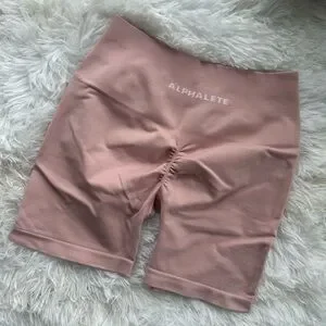 Experience comfort and style with Alphalete's pink high-waisted shorts. Perfect for workouts or casual wear.