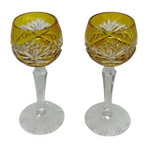 crystal goblets, vintage glassware, wine glasses, floral design, miniature cordial, amber yellow glasses, cut to clear crystal, elegant dining, table decor, barware, collectible glass, unique goblets, vintage collection, traube by nachtmann, dining essentials, crystal drinkware