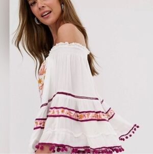 Anthropologie RAGA Embroidered Tassel Off Shoulder Romper Size Small
