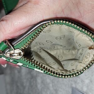 Tory Burch Green and White Geometric Wallet