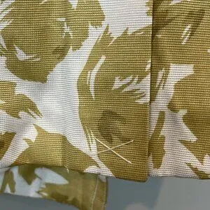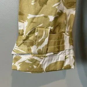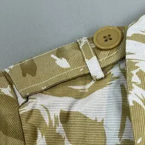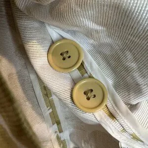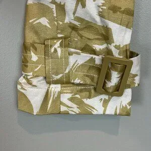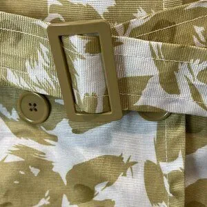 Brand new, unworn but without original tags. Size small. Measurements are provided in the photos. Double breasted button down, hook and eye closure at the neck, matching fabric belt.