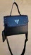 Black vegan leather Valentino Orlandi Satchel Bag, new with tags, featuring a removable crossbody guitar strap for comfort and style, a matching coin purse for added convenience, and elegant gunmetal-tone hardware with signature detailing.